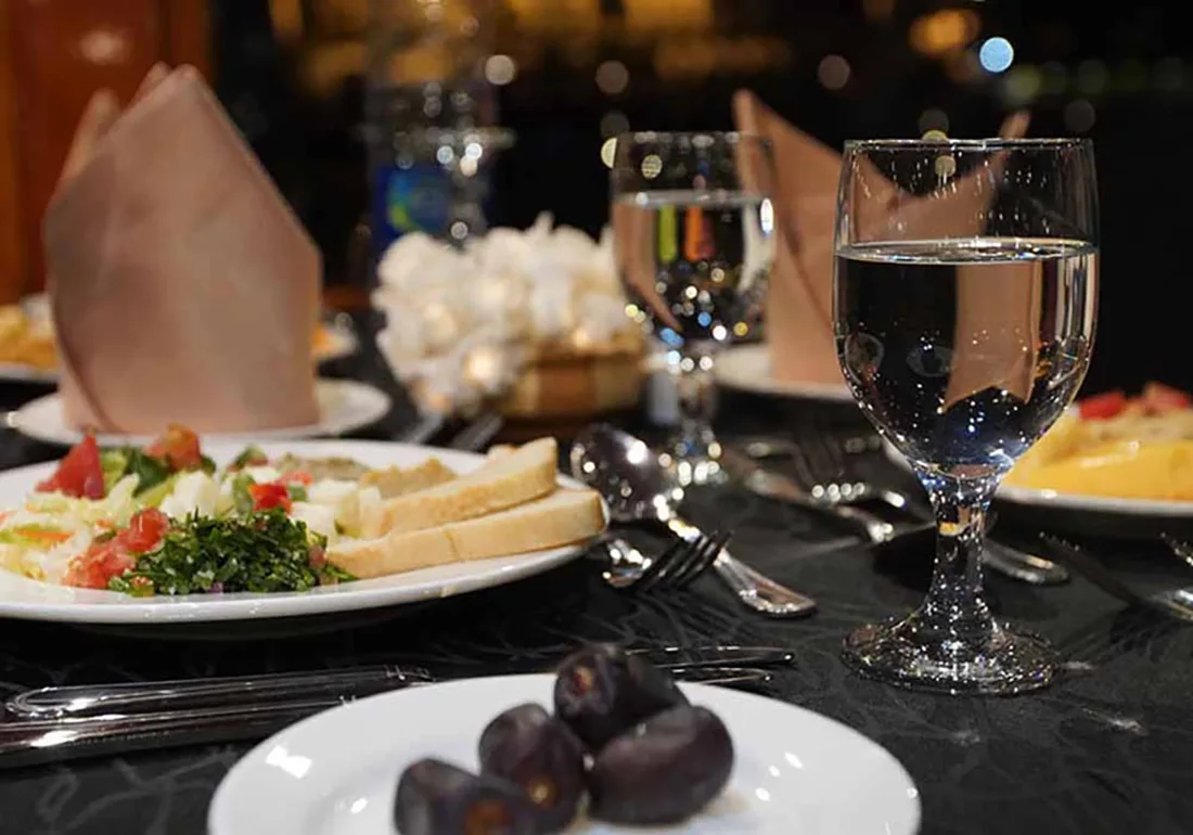 β Savor a sumptuous international buffet featuring Arabic, Asian, and Continental dishes, along with fresh salads, hot appetizers, and a range of desserts. Vegetarian and non-vegetarian options are available.